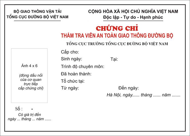 CHỨNG CHỈ THẨM TRA VIÊN AN TOÀN GIAO THÔNG ĐƯỜNG BỘ