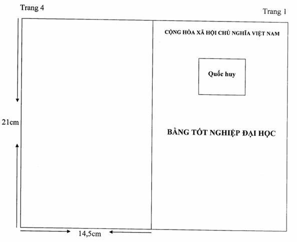 Điều 2. Bằng tốt nghiệp đại học gồm bốn (4) trang, mỗi trang có kích thước 21cm x 14,5cm.