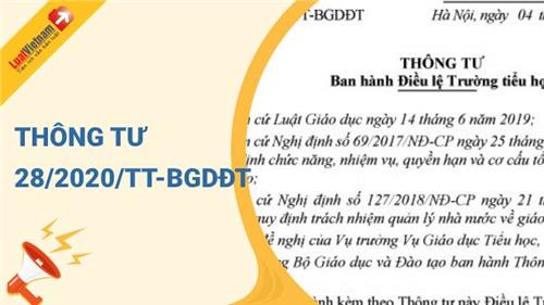 Ngày 04/9/2020, Bộ Giáo dục và Đào tạo đã ra Thông tư 28/2020/TT-BGDĐT về việc ban hành Điều lệ Trường tiểu học.