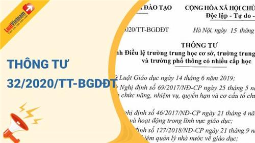 Ngày 15/09/2020, Bộ Giáo dục và Đào tạo đã ra Thông tư 32/2020/TT-BGDĐT về việc ban hành Điều lệ trường trung học cơ sở, trường trung học phổ thông và trường phổ thông có nhiều cấp học.