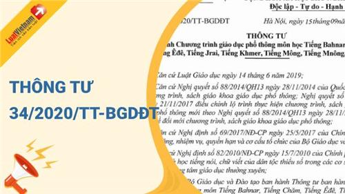 Thông tư 34/2020/TT-BGDĐT Chương trình phổ thông môn học Tiếng Chăm, Tiếng Êđê,Tiếng Thái