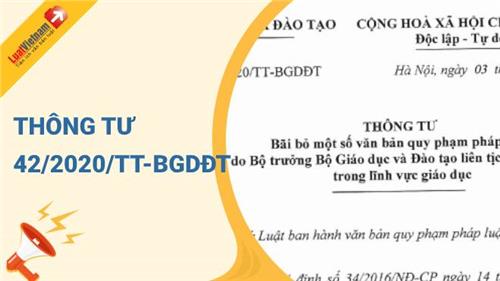 Ngày 03/11/2020, Bộ Giáo dục và Đào tạo đã ban hành Thông tư 42/2020/TT-BGDĐT về việc bãi bỏ một số văn bản quy phạm pháp luật do Bộ trưởng Bộ Giáo dục và Đào tạo liên tịch ban hành trong lĩnh vực giáo dục.