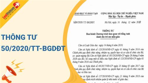 Ngày 31/12/2020, Bộ Giáo dục và Đào tạo ra Thông tư 50/2020/TT-BGDĐT về việc ban hành Chương trình làm quen với tiếng Anh dành cho trẻ em mẫu giáo.
