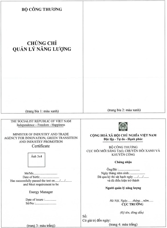Phụ lục 1: Mẫu chứng chỉ quản lý năng lượng