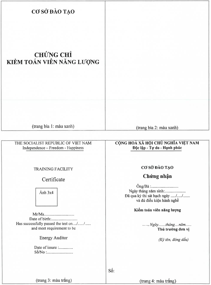 Phụ lục 2: Mẫu chứng chỉ kiểm toán viên năng lượng