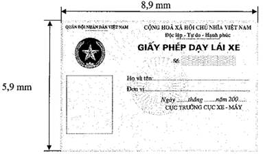 - Giấy phép dạy lái xe được ép plastic bằng mẫu giấy ép chuyên dùng của Cục Xe-Máy trước khi cấp cho người sử dụng.