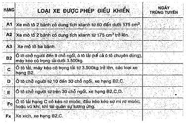 Tôi đã có GPLX số:……………………….; Hạng……………; ngày trúng tuyển: ……………..