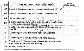 Số GPLX:……………………….; Hạng……………; ngày trúng tuyển: ……………………….