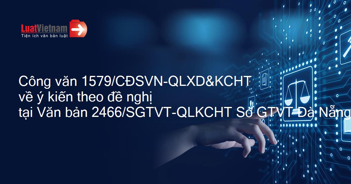 | Số hiệu: | 1579/CĐSVN-QLXD&KCHT | Ngày đăng công báo: | Đang cập nhật |