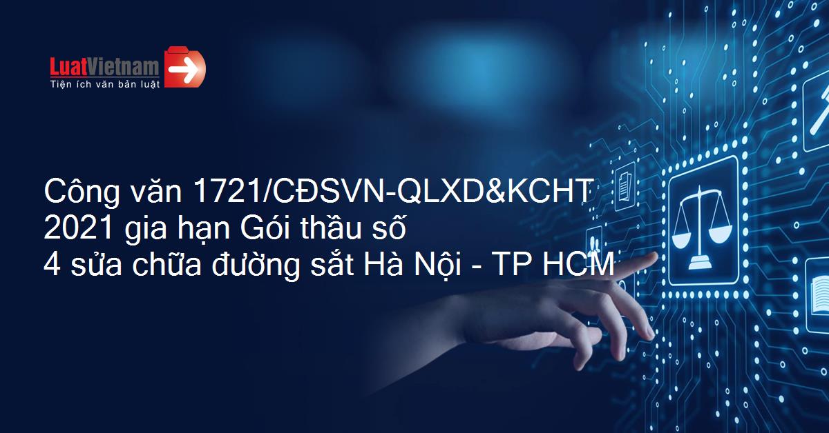 Công văn 1721/CĐSVN-QLXD&KCHT 2021 gia hạn Gói thầu số 4 sửa chữa đường sắt Hà Nội - TP HCM