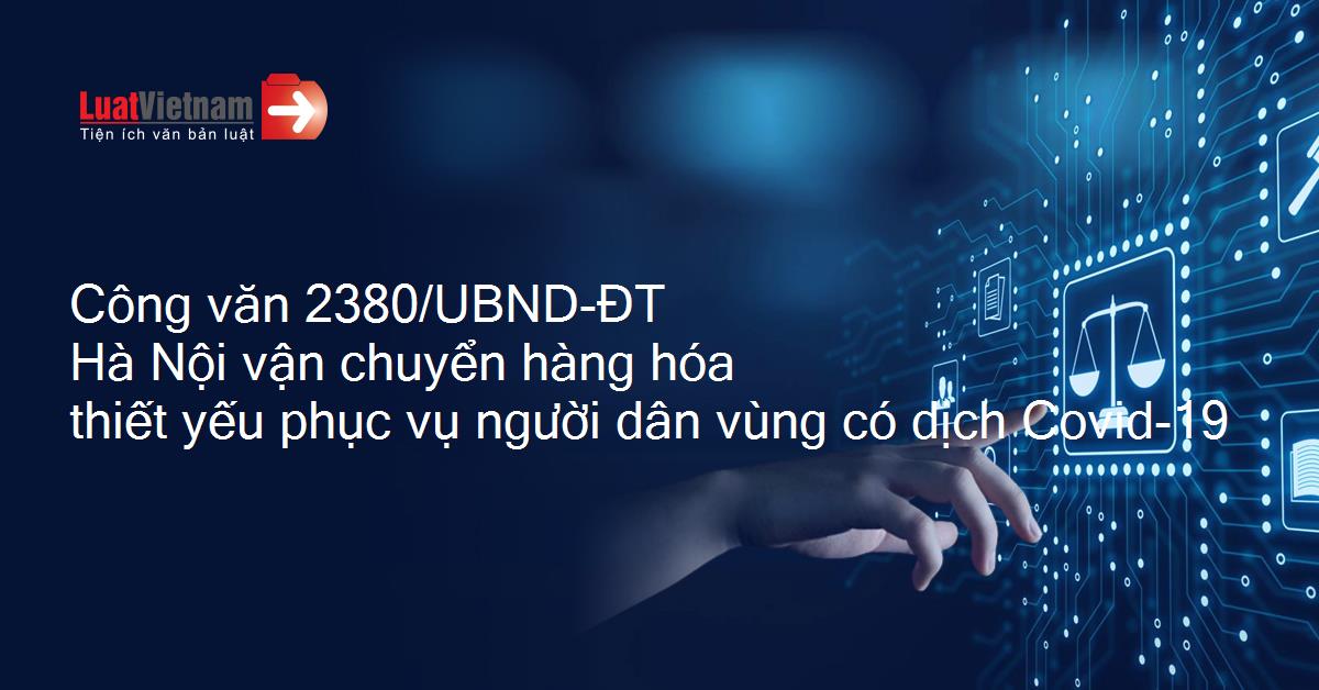 Công văn 2380/UBND-ĐT của Ủy ban nhân dân Thành phố Hà Nội về việc vận chuyển hàng hóa thiết yếu phục vụ đời sống người dân vùng có dịch Covid-19