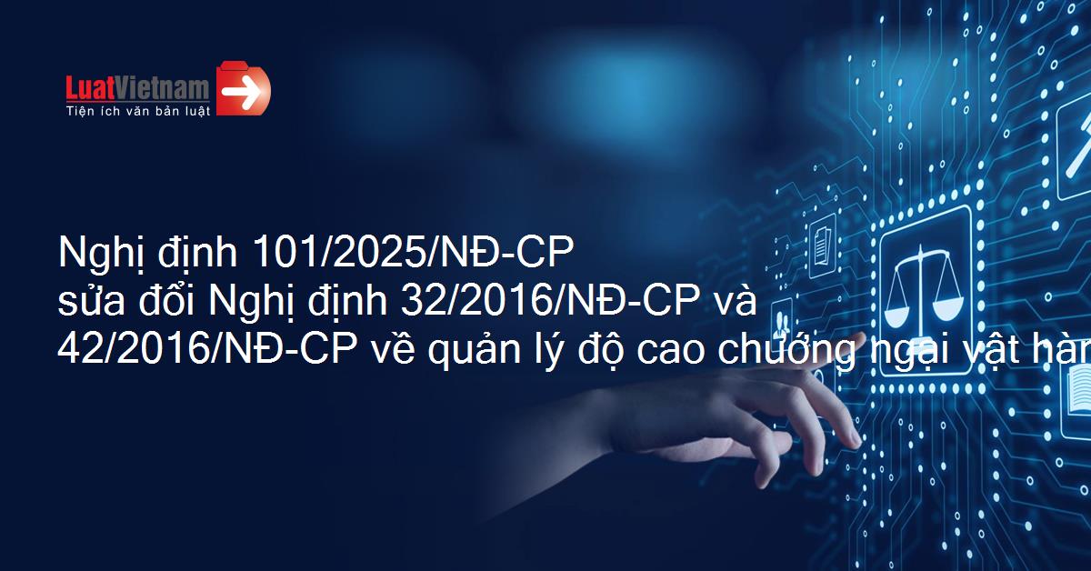 Nghị định 101/2025/NĐ-CP sửa đổi Nghị định 32/2016/NĐ-CP và 42/2016/NĐ-CP về quản lý độ cao chướng ngại vật hàng không và sân bay