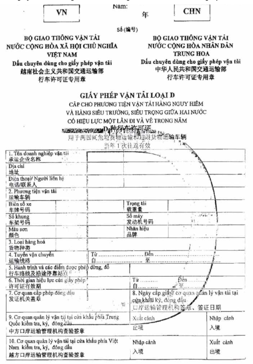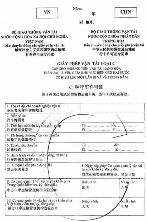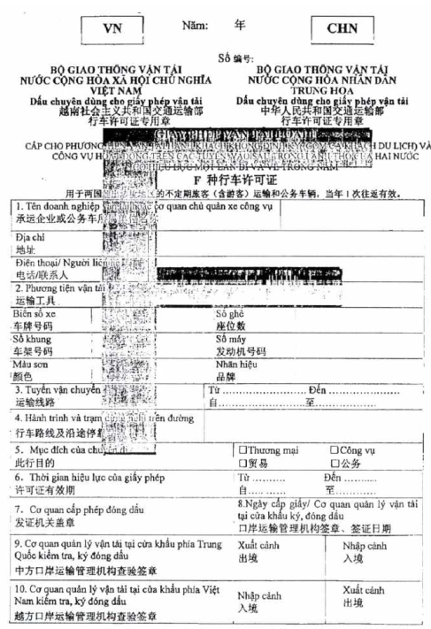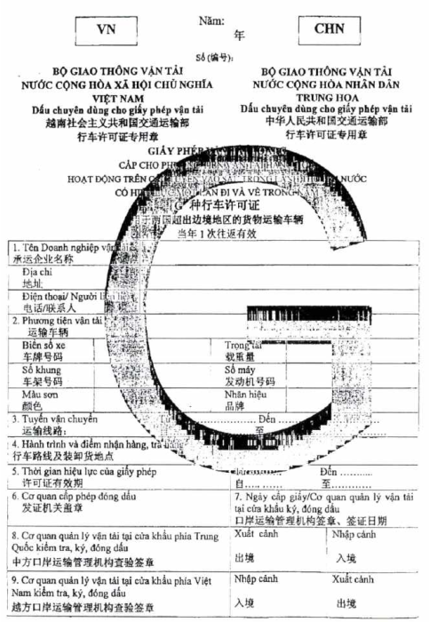 VIỆT NAM - LAOS CROSS-BORDER TRANSPORT PERMIT