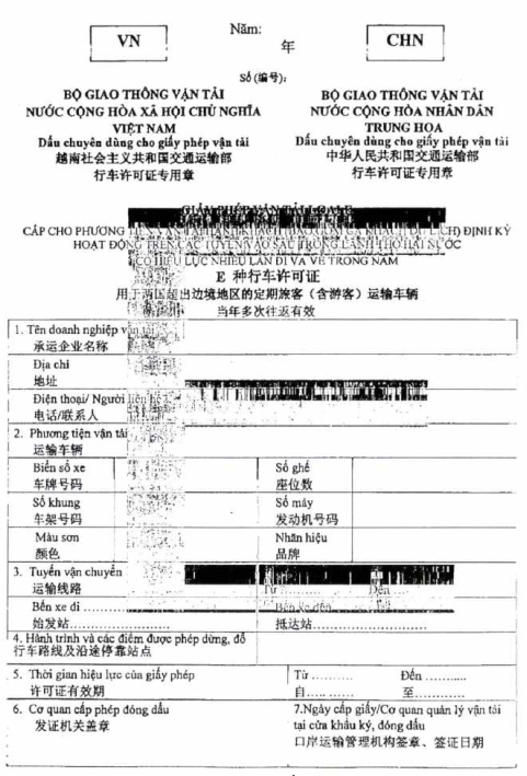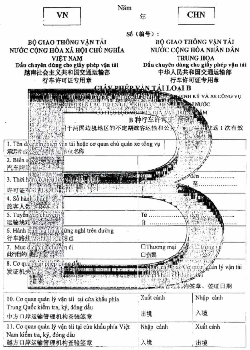 BỘ QUỐC TẾ VÀ GIẤY PHÉP LIÊN VẬN GIỮA VIỆT NAM VÀ LÀO