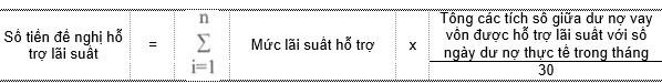 - n là số ngày dư nợ thực tế trong kỳ được hỗ trợ lãi suất.