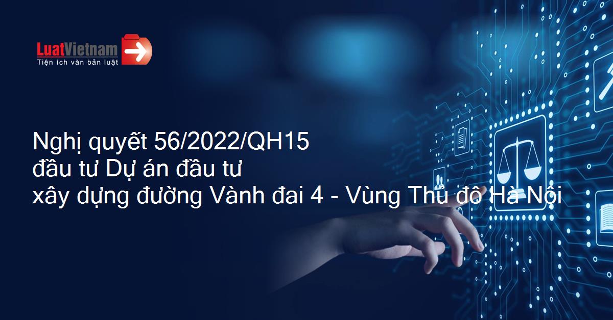 Nghị quyết 56/2022/QH15 đầu tư Dự án đầu tư xây dựng đường Vành đai 4 - Vùng Thủ đô Hà Nội