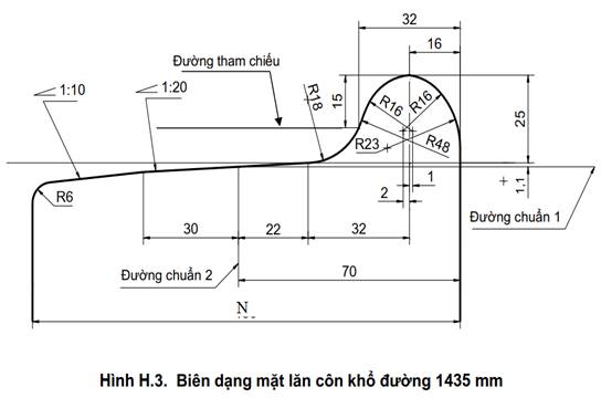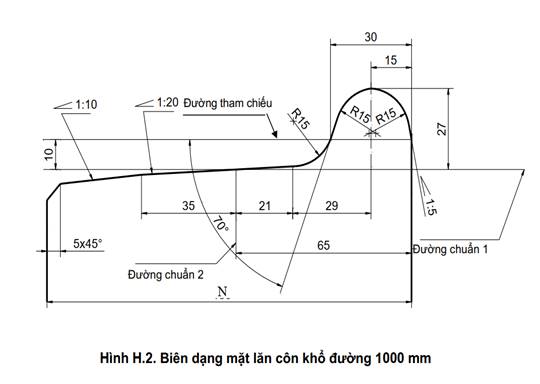 Phụ lục H - Biên dạng mặt lăn bánh xe và giang cách bánh xe của bộ trục bánh xe