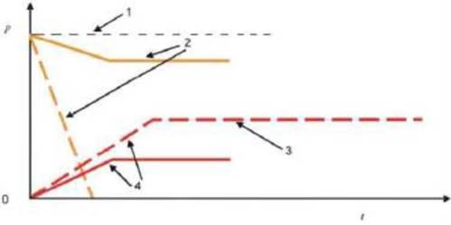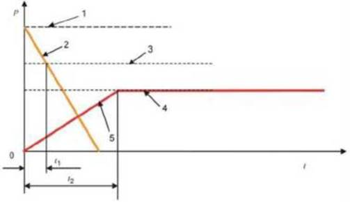 Quá trình hãm do tác động làm giảm áp suất ống hãm nhanh nhất để đạt được giá trị áp suất xi lanh hãm lớn nhất trong thời gian nhỏ nhất. Thời gian giảm áp suất ống hãm từ giá trị áp suất vận hành xuống mức cần thiết ( ti) nhỏ hơn thời gian đạt được áp suất xi lanh hãm lớn nhất ( t2 ). Quá trình được minh họa tại Hình 4.