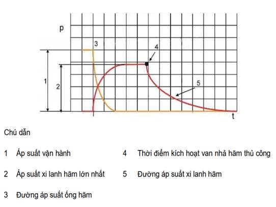 Hình 2 - Biểu đồ minh họa áp suất chức năng chính của van hãm