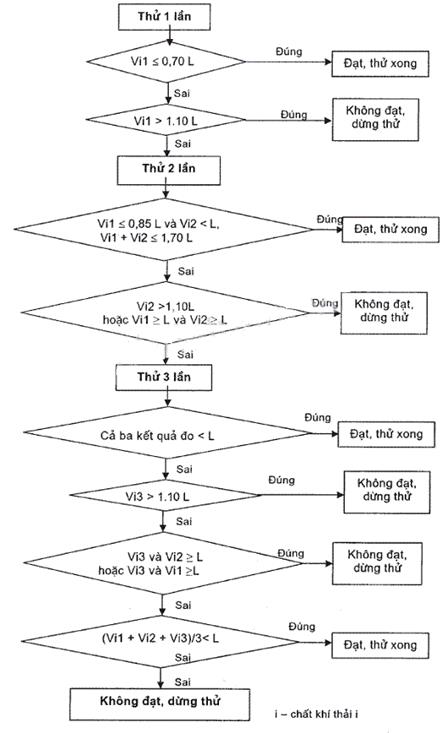 3.3.2.1. Chỉ phải thử một lần nếu các kết quả đo khí thải thỏa mãn yêu cầu sau: V1 ≤ 0,70 L;