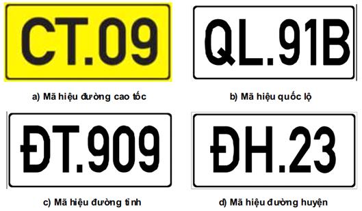 | Ký hiệu đường cao tốc | Nền vàng huỳnh quang, chữ số đen |