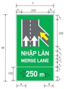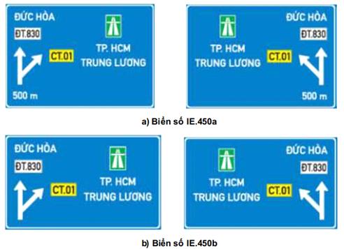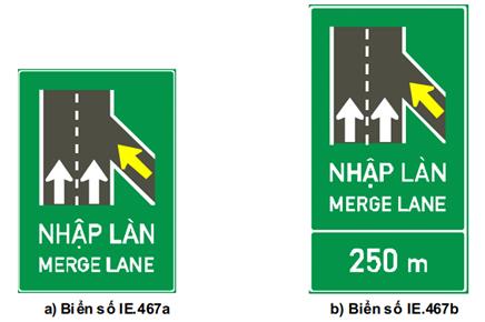 b) Biển số IE.467b: chỉ dẫn khoảng cách đến vị trí nhập làn