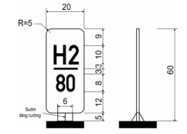 | Chữ | Đen | Màng phản quang loại VIII, IX, XI cấu trúc kim cương | gt1 H1=33 H1’=25 | Đơn vị: mm |
