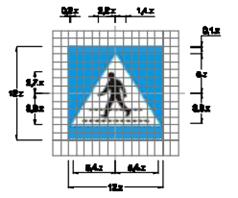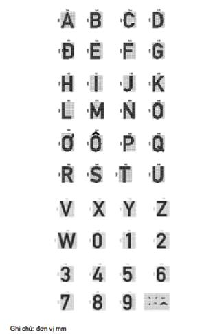 | Chữ | Xanh lá cây | Màng phản quang loại VIII, IX, XI cấu trúc kim cương | gt1 H1 =33 H1’=25 |