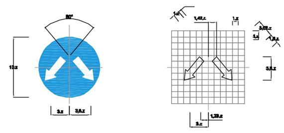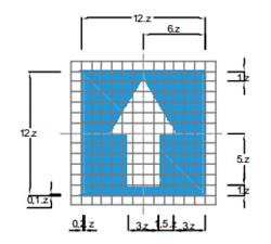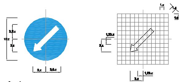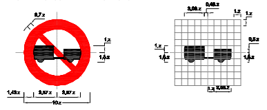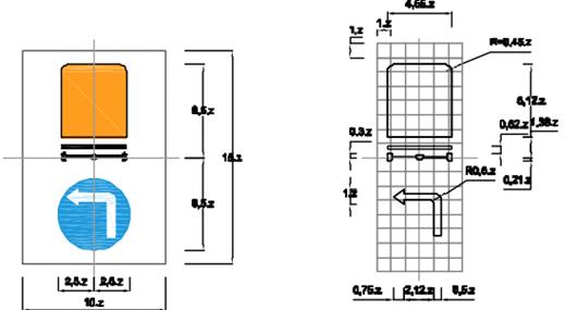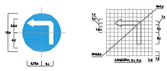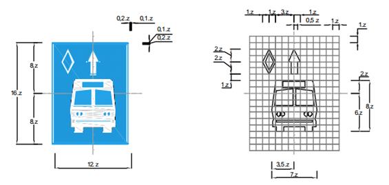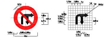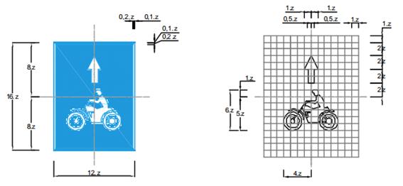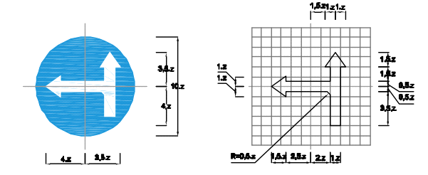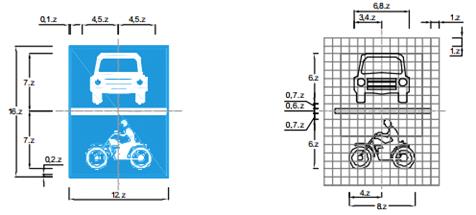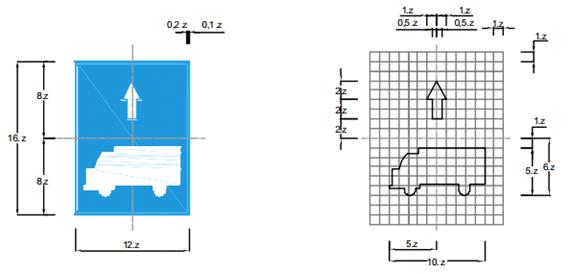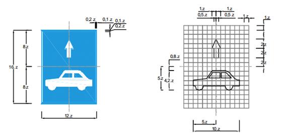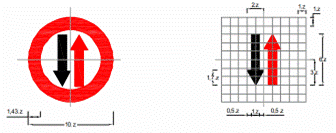 c) Kích thước biểu tượng vị trí nhập làn xe trên biển IE.467(a,b):