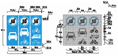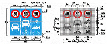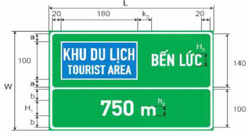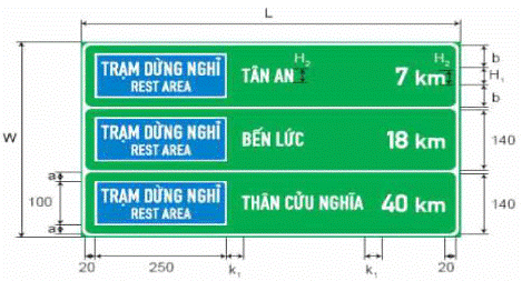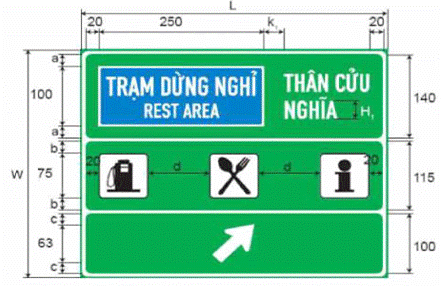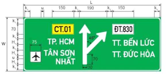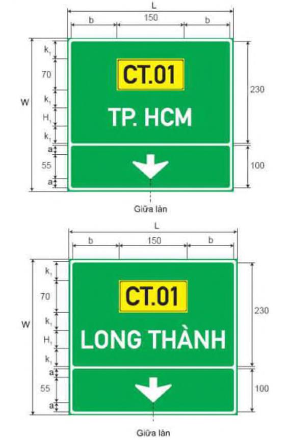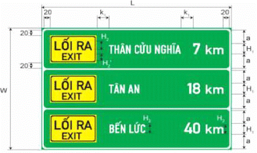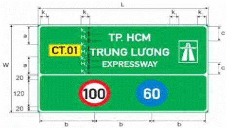| Ký hiệu đường cao tốc | Nền vàng huỳnh quang, chữ số đen | gt2 70 x 150 |
