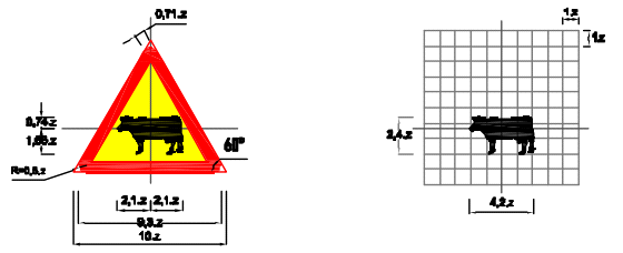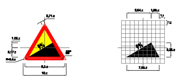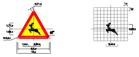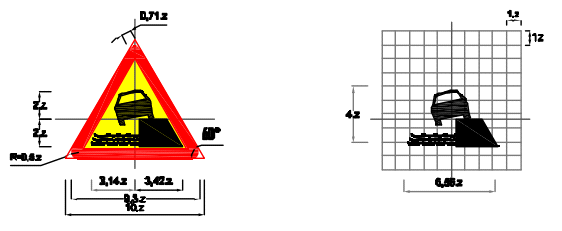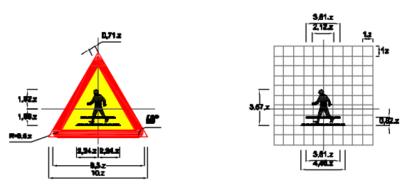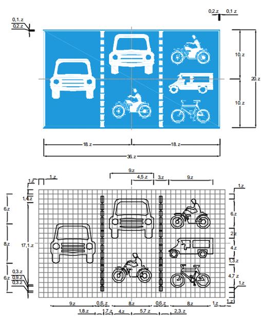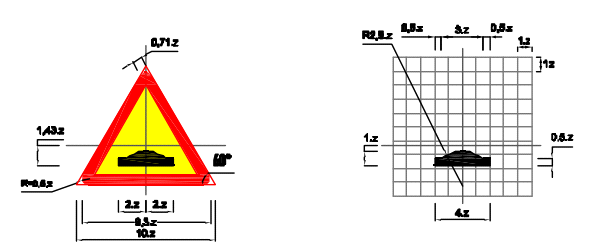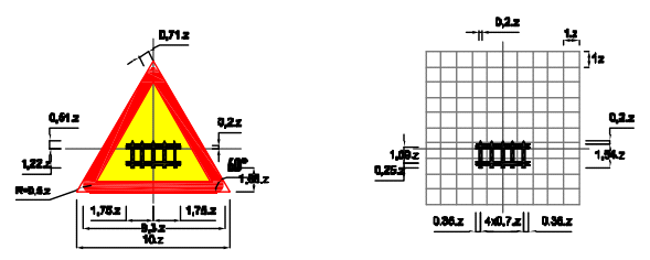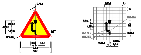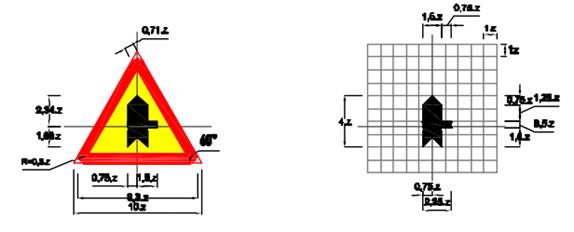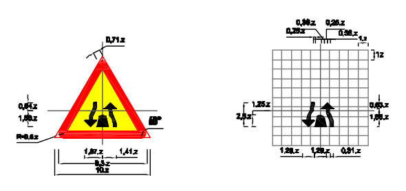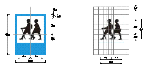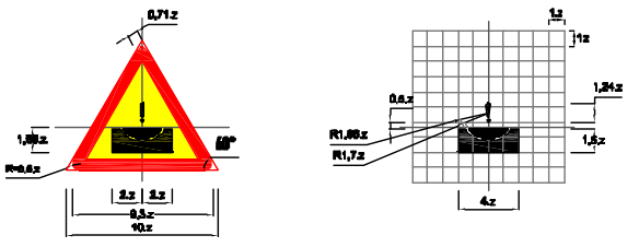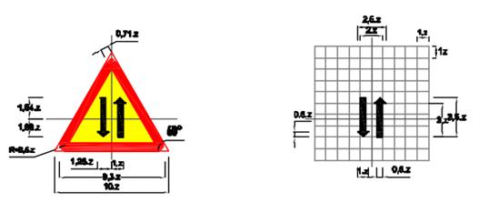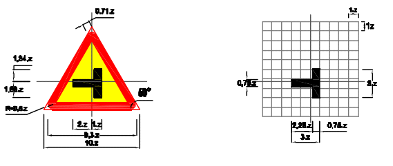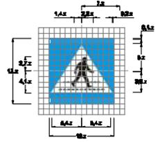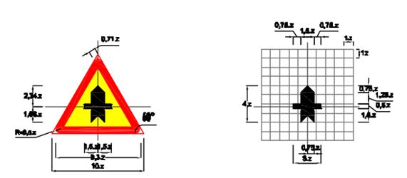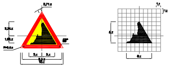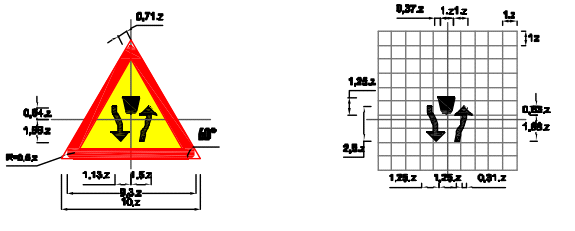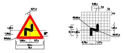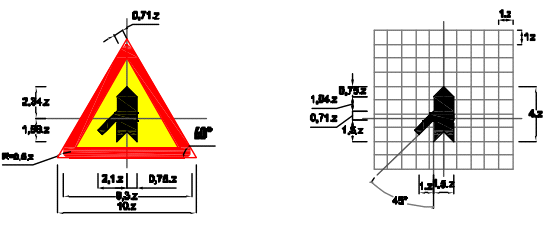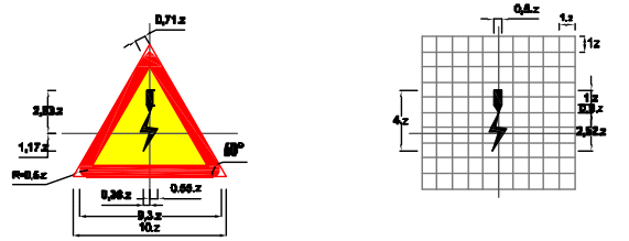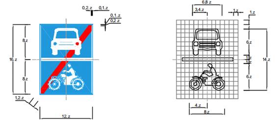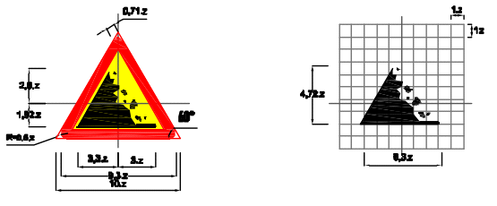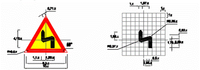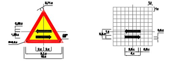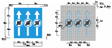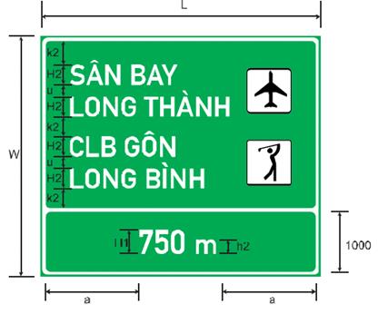 | Chữ | Trắng | Màng phản quang loại VIII, IX, XI cấu trúc kim cương | gt2 H1=400 k2=H2=330 k2’=H2’=250 h2=250 |