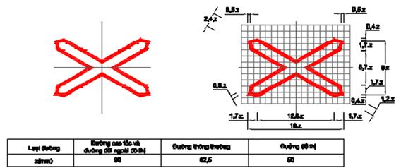 | Chữ | Trắng | Màng phản quang loại VIII, IX, XI cấu trúc kim cương | gt2 k1=H1=40 k1’=H1’=30 h2=25 |