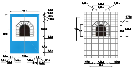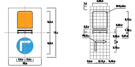 Ghi chú: a là khoảng cách căn giữa; k2=H2, k2’=H2’.