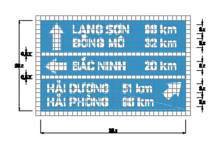 | Tên địa điểm | Trắng | Màng phản quang loại VIII, IX, XI cấu trúc kim cương | gt2 k1=H1=40 |