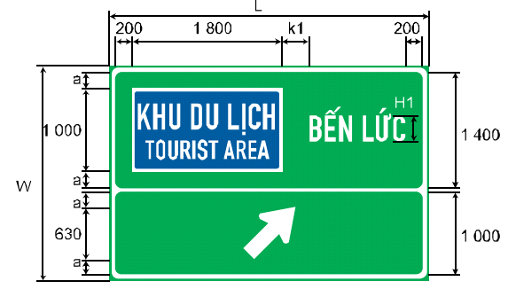 Ghi chú: k1 = H1, u = ½ H1, L là chiều rộng biển; W là chiều cao biển.