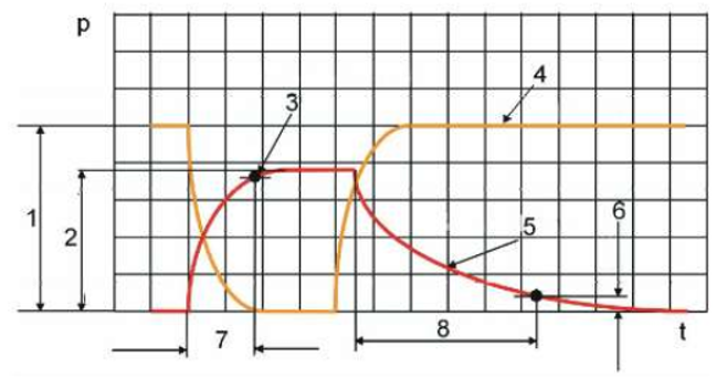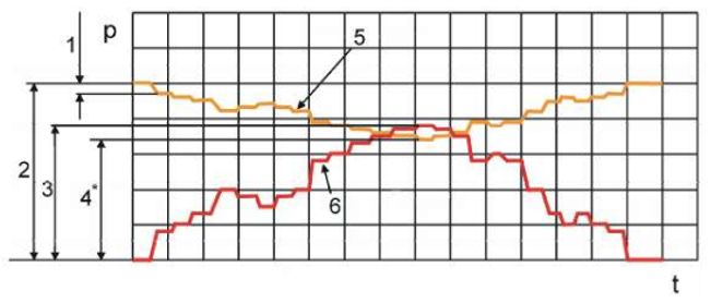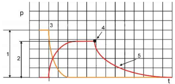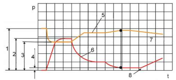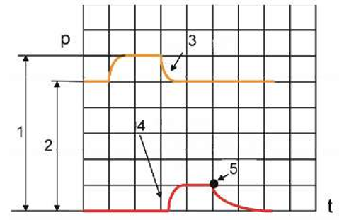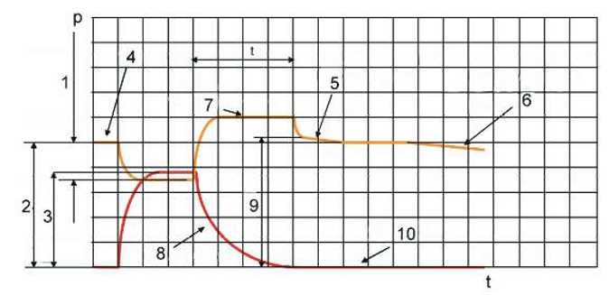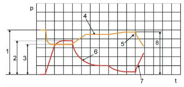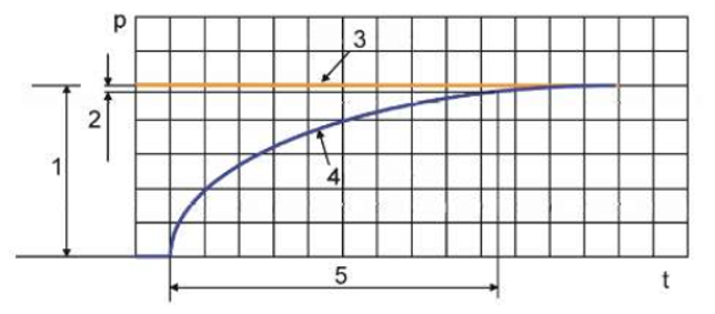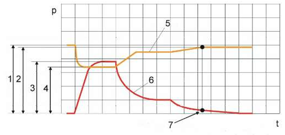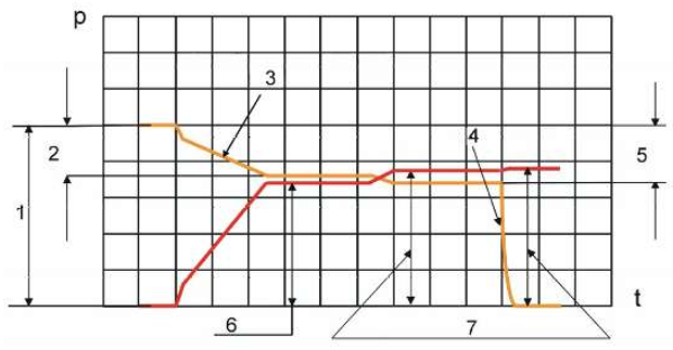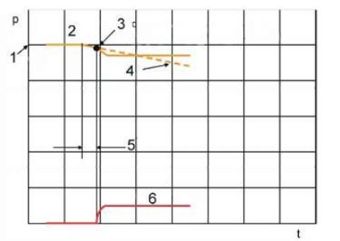| 1 Áp suất vận hành | 4 Đường giảm áp suất ống hãm khi thử nghiệm độ nhạy |