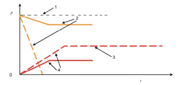 | 1 Áp suất vận hành | 4 Thời điểm kích hoạt van nhả hãm thủ công |