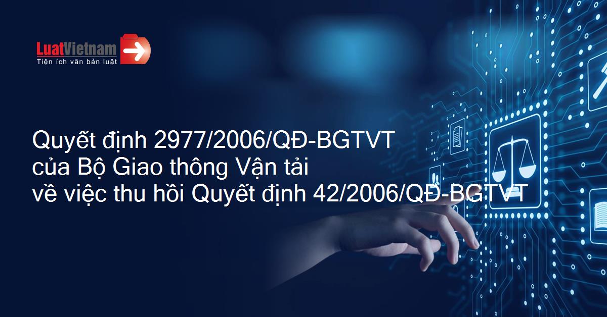 Quyết định 2977/2006/QĐ-BGTVT của Bộ Giao thông Vận tải về việc thu hồi Quyết định 42/2006/QĐ-BGTVT