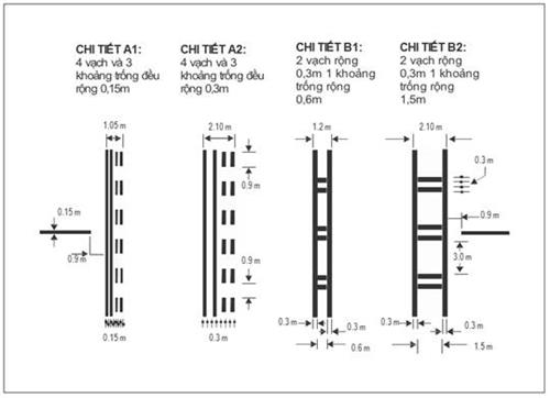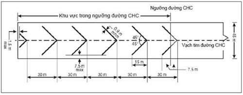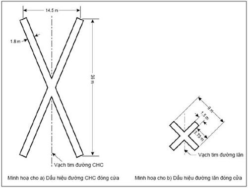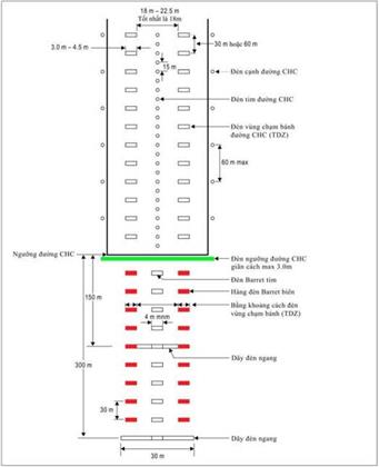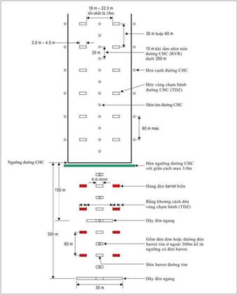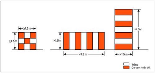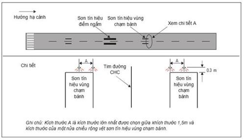 GHI CHÚ: Chi tiết tại Thông tư số 34/2014/TT-BGTVT ngày 11/8/2014 của Bộ Giao thông vận tải ban hành Quy chuẩn quốc gia về “Sơn kẻ tín hiệu trên đường cất hạ cánh, đường lăn, sân đỗ tàu bay”.