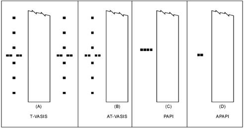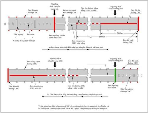 b) Những biển chỉ hướng được đặt sao cho hướng của những mũi tên xuất phát tăng dần theo chiều thẳng đứng lớn dần về phía đường lăn tương ứng;