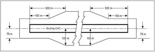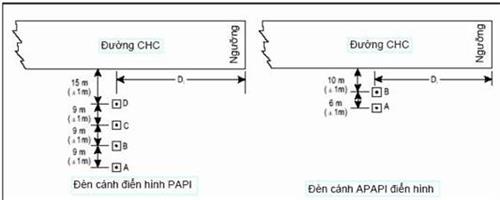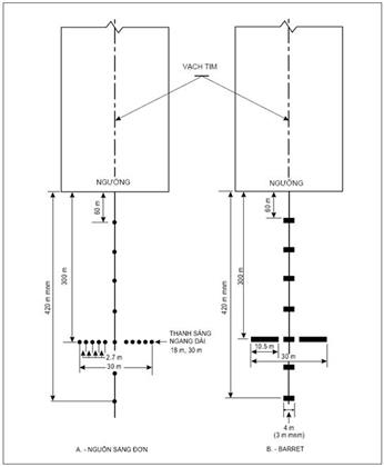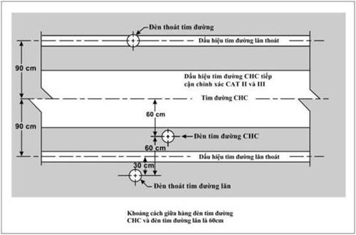 b) Khoảng cách giữa tim đường cất hạ cánh và mép thấp của mặt tiếp cận trong.
