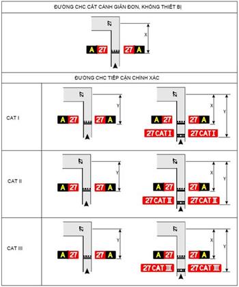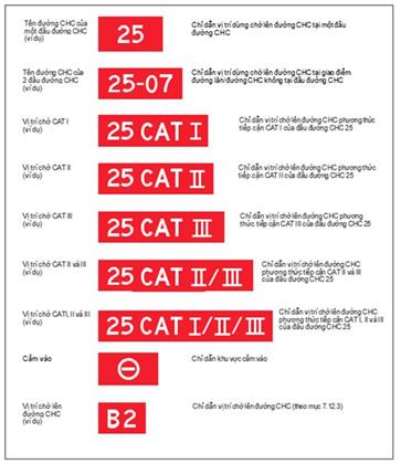 C.2.15. Ký tự trên biển báo vị trí chờ CAT I, II, III, kết hợp II/III hoặckết hợpI/II/III bao gồm hướng đường cất hạ cánh với CAT I, CAT II, CAT III, CAT II/III hoặc CAT I/II/III, khi thích hợp.