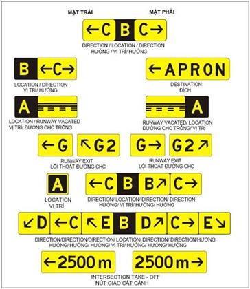 C.3.2. Biển thông tin bao gồm: biển chỉ hướng, biển chỉ vị trí, biển chỉ đích, biển rời đường cất hạ cánh, biển đường cất hạ cánh trống và biển chỉ nút giao cất cánh.