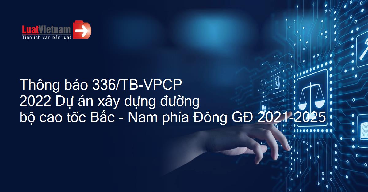 Thông báo 336/TB-VPCP 2022 Dự án xây dựng đường bộ cao tốc Bắc - Nam phía Đông GĐ 2021-2025