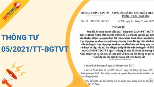 Ngày 01/03/2021, Bộ Giao thông Vận tải ban hành Thông tư 05/2021/TT-BGTVT về việc sửa đổi, bổ sung một số điều của Thông tư 33/2018/TT-BGTVT và Thông tư số 24/2020/TT-BGTVT của Bộ Giao thông Vận tải.