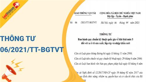 Ngày 06/4/2021, Bộ Giao thông Vận tải đã ra Thông tư 06/2021/TT-BGTVT về việc ban hành Quy chuẩn kỹ thuật quốc gia về khí thải mức 5 đối với xe ô tô sản xuất, lắp ráp và nhập khẩu mới.