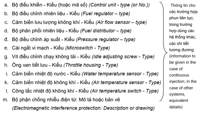 (1) Các số liệu trong ngoặc có thể được sử dụng để thử nghiệm trong phê duyệt kiểu loại đối với động cơ sử dụng nhiên liệu khí (gas engine). |