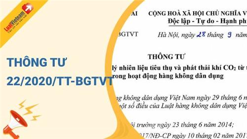 Ngày 28/9/2020, Bộ Giao thông Vận tải đã ban hành Thông tư 22/2020/TT-BGTVT về việc quy định quản lý nhiên liệu tiêu thụ và phát thải khí CO2 từ tàu bay trong hoạt động hàng không dân dụng.