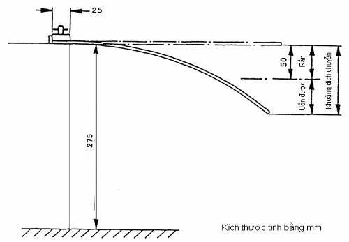 1.2.5.2. Kính vật liệu dẻo có thể uốn (Flexible plastic glazing) là loại kính làm bằng vật liệu dẻo bị uốn quá 50 mm theo phương thẳng đứng trong phép thử uốn.