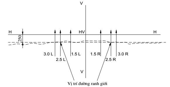 Màn chắn sáng được lắp đặt theo sơ đồ Hình 1, có kích thước phù hợp với các yêu cầu của các Phụ lục từ A đến L và phù hợp với nguyên lý hoạt động tại mục 1.2. Màn chắn sáng được chia thành các ô tọa độ sao cho có thể xác định được về mặt định tính vị trí đường ranh giới của chùm sáng chiếu gần.